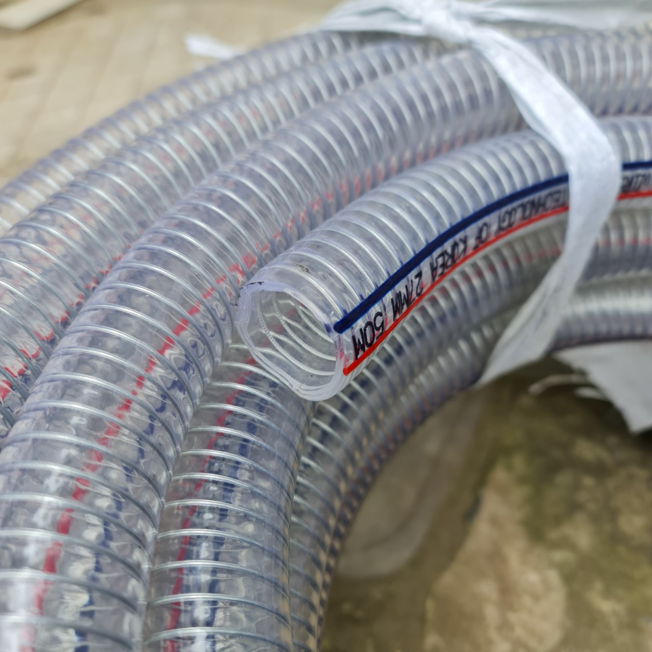 Thứ 2. Ống nhựa mềm có màu trắng trong và lõi thép cacbon có độ cứng tốt sẽ giúp cho ống có khả năng chịu áp tốt hơn.